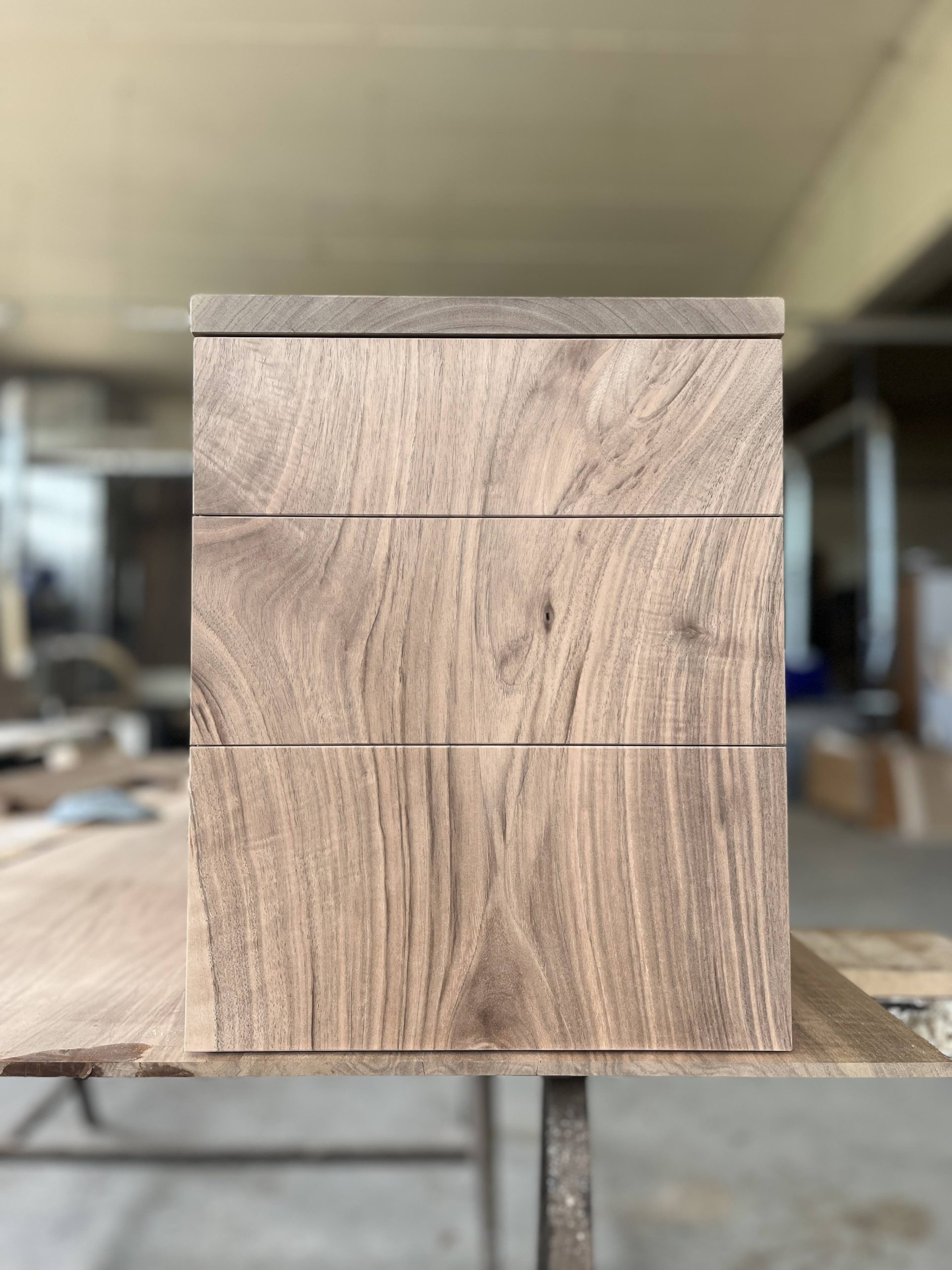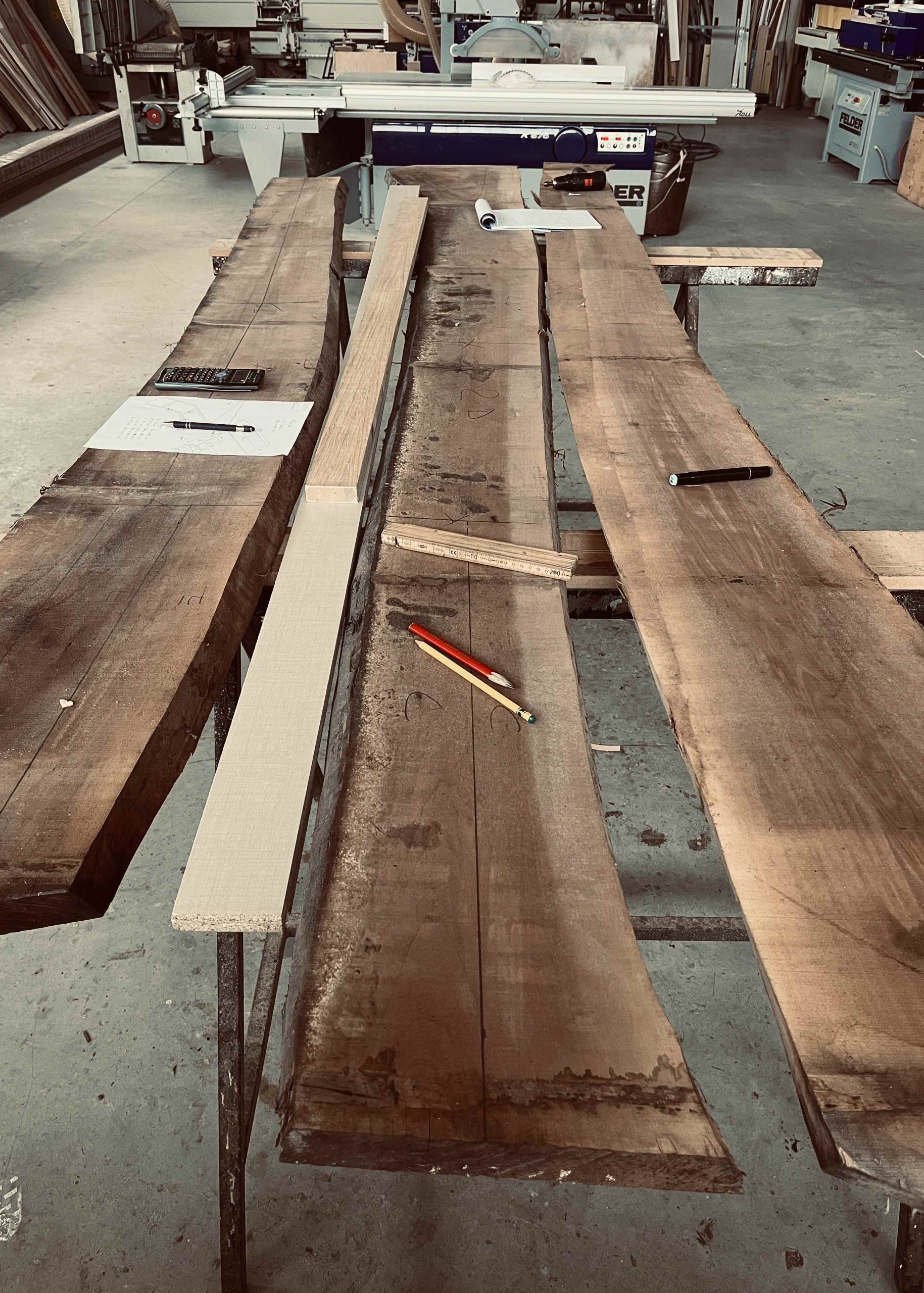 Una sola pianta di noce, tante ore trascorse ad osservare le tavole per capirne l’andamento della vena e le variazioni cromatiche.