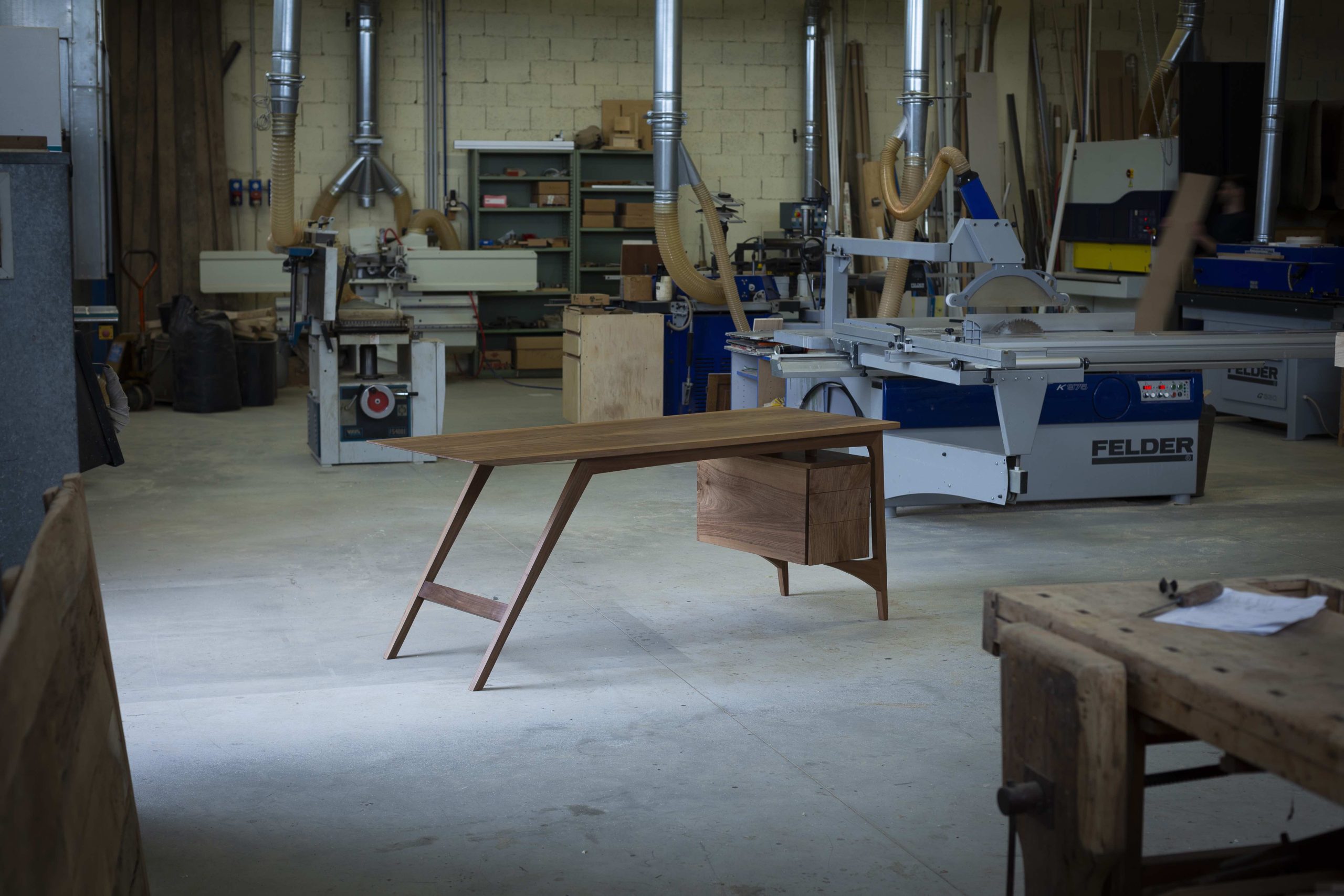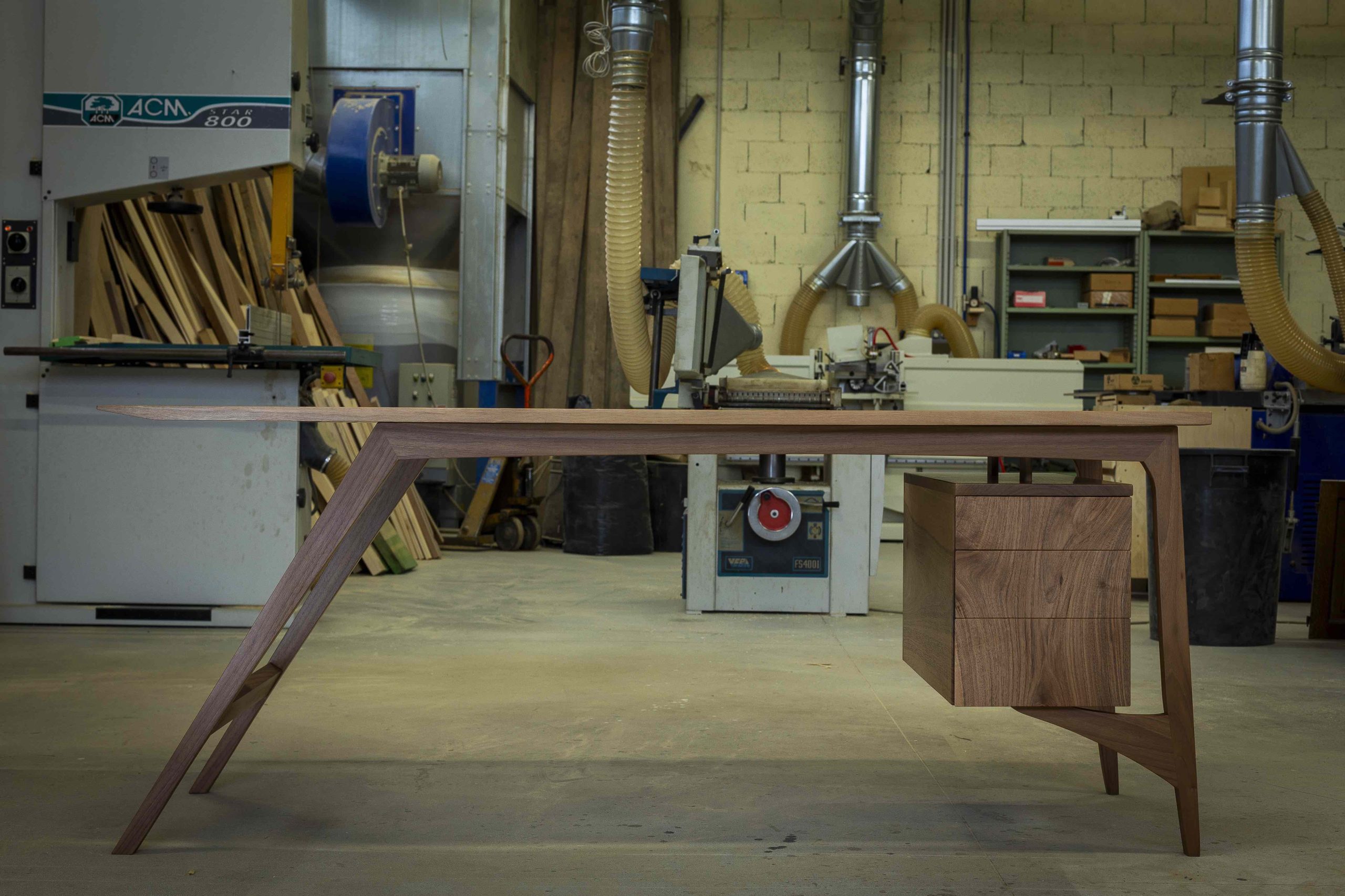 Una scrivania essenziale ed elegante, che nasce da una intuizione creativa che prende vita in un bozzetto prima e in un manufatto poi.