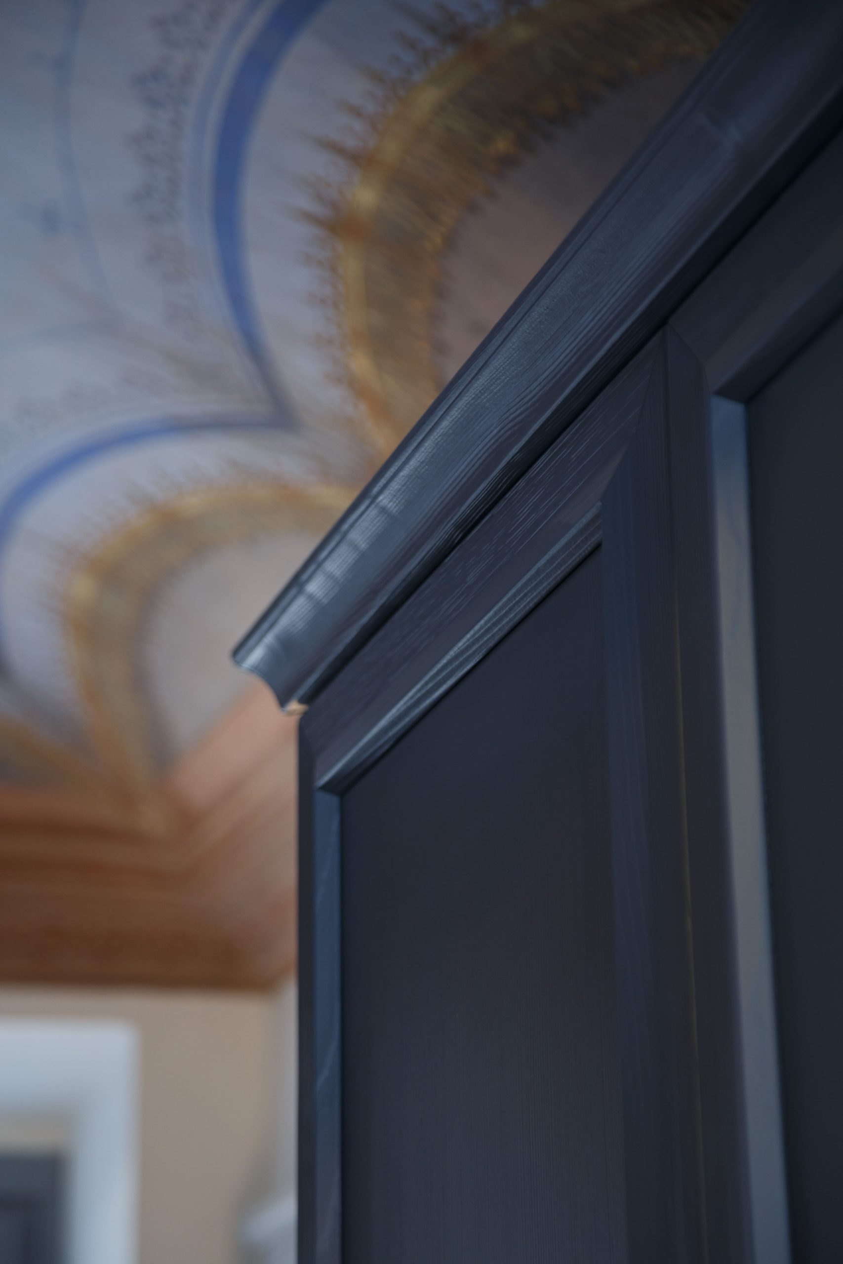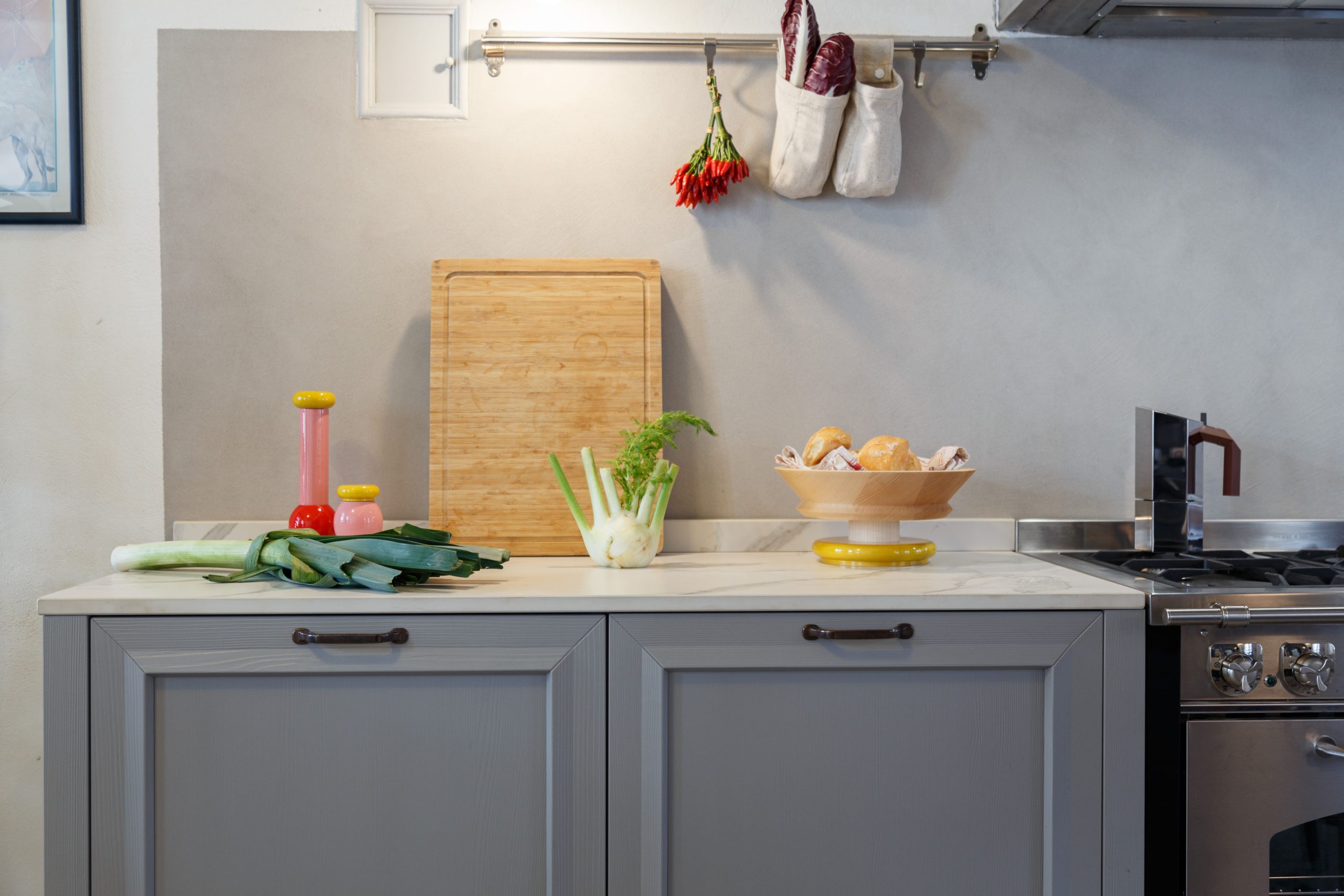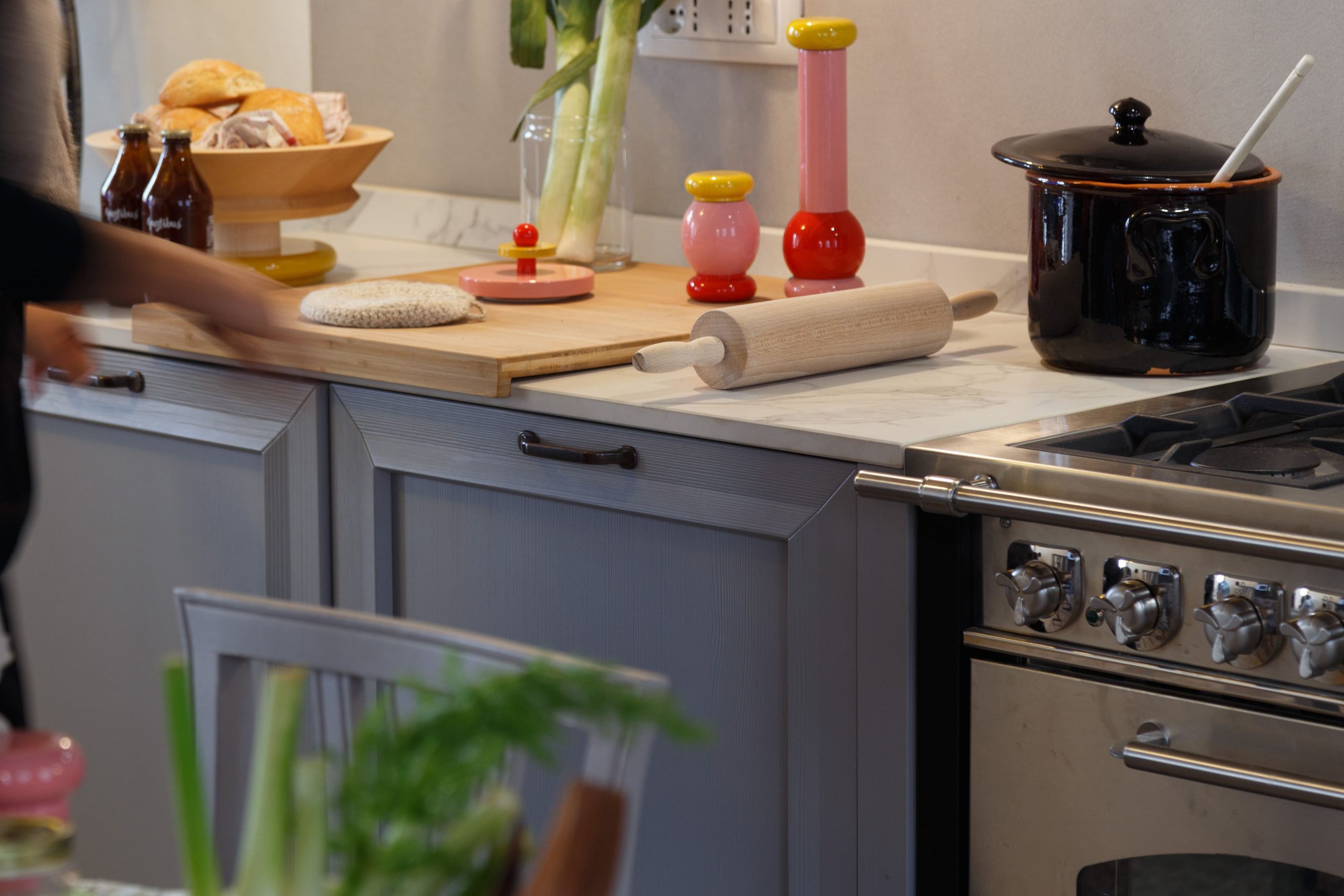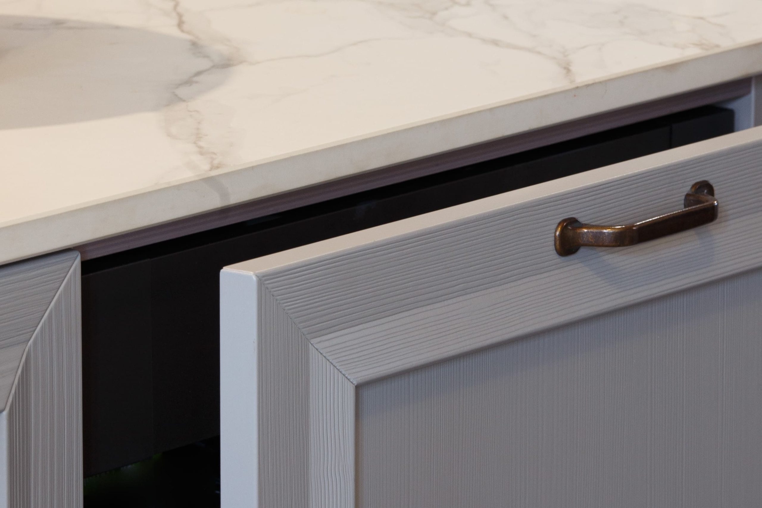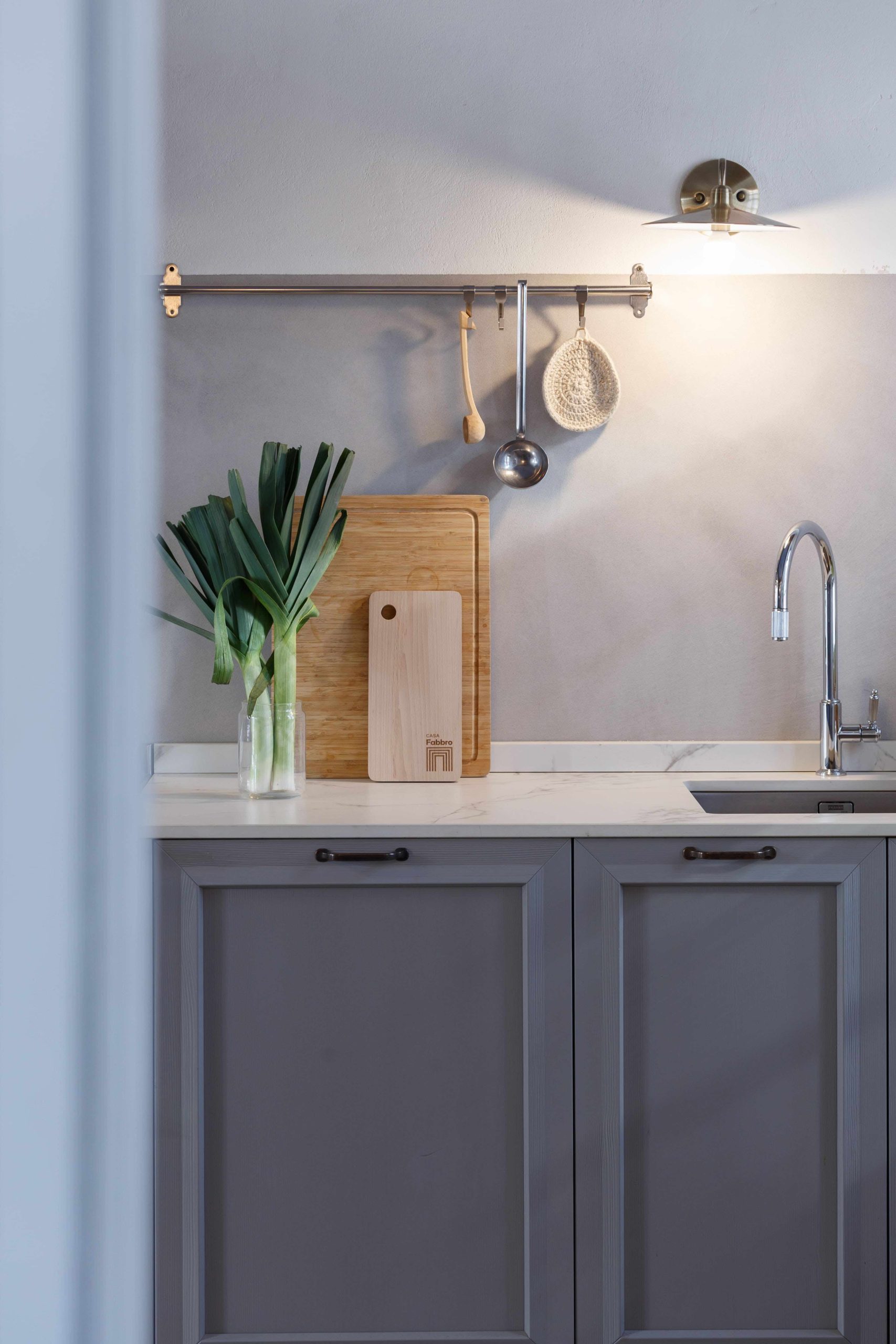 Un lavoro che profuma di legno, verniciature all’acqua color denim, maniglie brunite e preziosi dettagli senza tempo come la collezione Venti20 di Gessi.